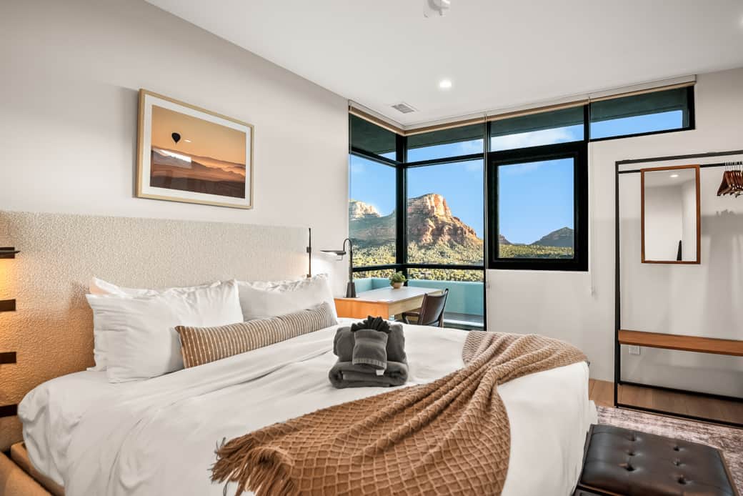 King Bed, on-suite bathroom, lounge space, and stunning views. This room has a large airy feel with open views of the red rocks.Â