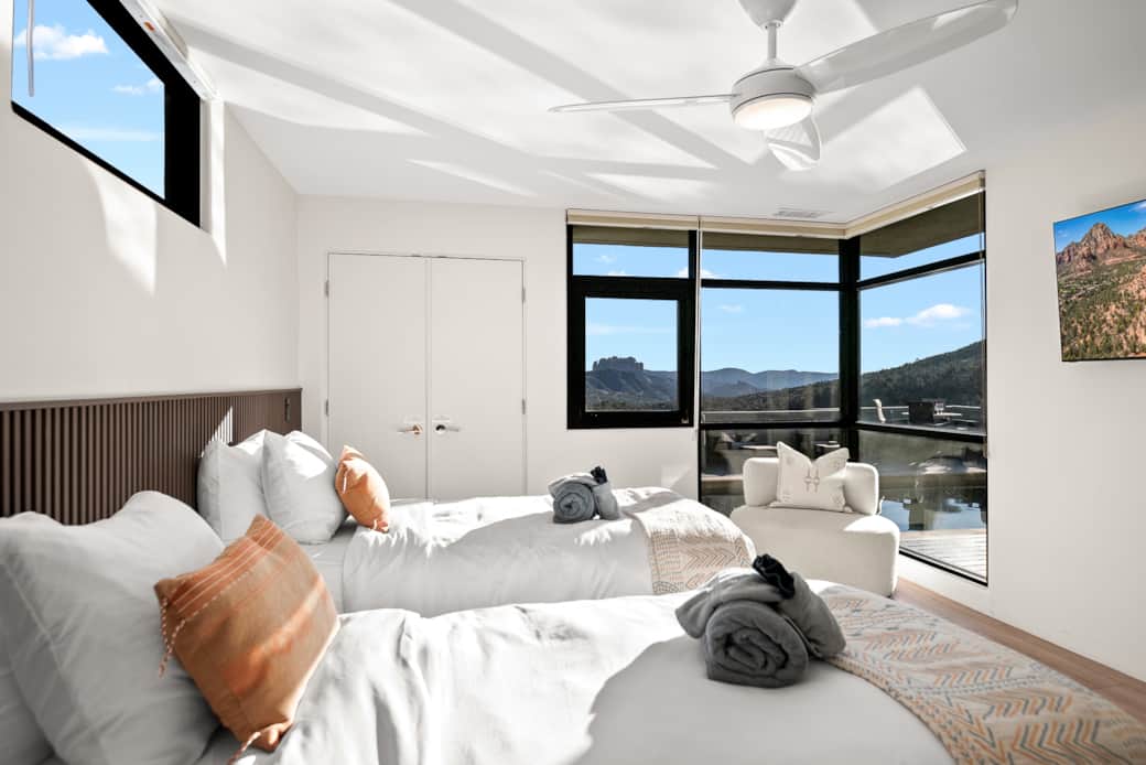 Two XL Twin Beds, beautiful view of the red rocks that overlooks the pool. Shared bathroom with 2nd Bedroom.